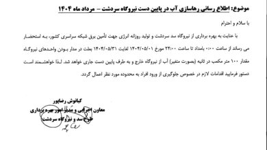 به اطلاع عموم مردم شریف منطقه، ساکنین پاییندست سد سردشت و مسافران محترم میرساند: با توجه به بهرهبرداری کامل از…